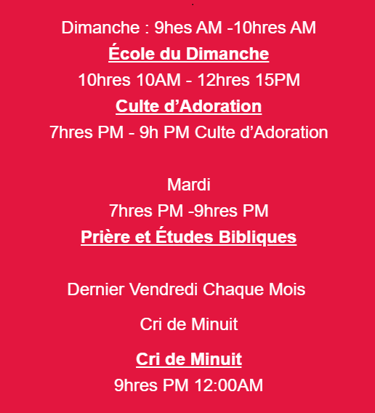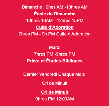 Venez adorer et prier ensemble chaque dimanche et mardi soir.